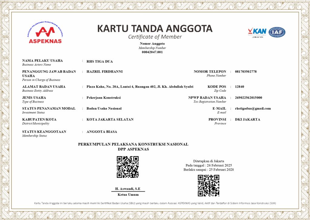 KARTU TANDA ANGGOTA ASOSIASI PELAKSANA KONSTRUKSI NASIONAL (ASPEKNAS)