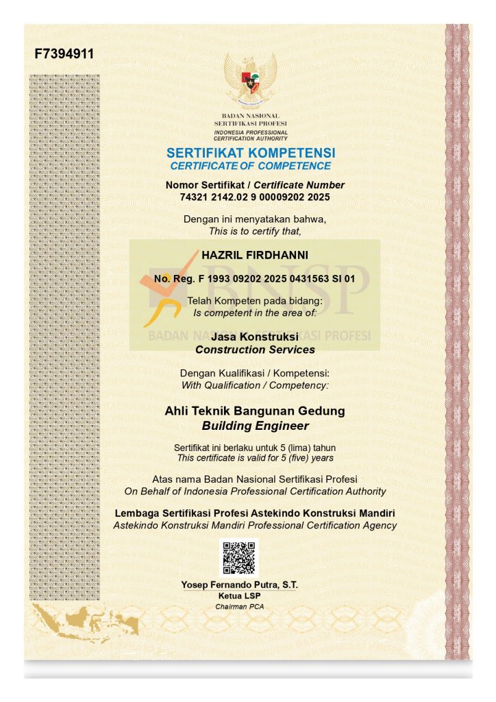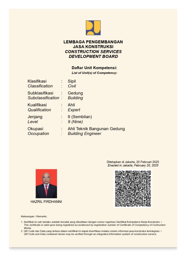 SERTIFIKAT KOMPETENSI JASA KONSTRUKSI AHLI TEKNIK BANGUNAN GEDUNG