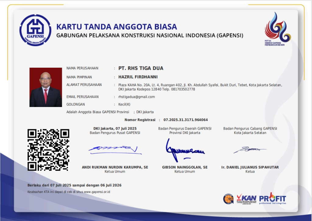 KARTU TANDA ANGGOTA GABUNGAN PELAKSANA KONSTRUKSI NASIONAL INDONESIA (GAPENSI)